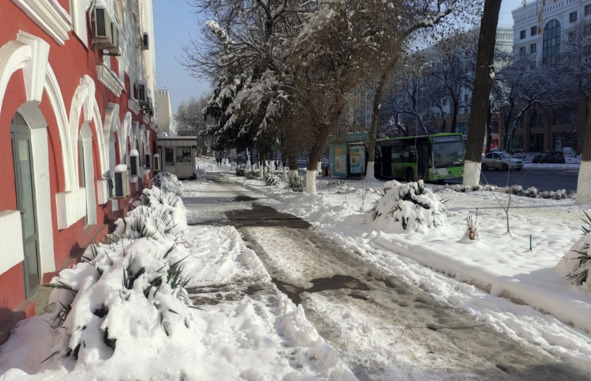 Следующие несколько дней я осматривал город и пытался получить карточку. Хост мне во всем помогал, но ничего из этого не вышло: каточку пришлось бы заказывать в Бишкеке, так как в Оше их не печатали, и ждать пришлось бы больше недели. Столько ждать я не мог, потому что через несколько дней у меня был вылет из Самарканда. Так что через 3 дня я пересек границу и въехал в Узбекистан – через Андижан до Ташкента. Цены на поезд были довольно щадящие, а погодные условия для автостопа – неподходящие (более того, оказалось, что по дороге добраться в Ташкент именно в эти снежные и холодные дни оказалось почти невозможно: дорога шла через высокогорные перевалы то ли была закрыта, то ли туда пропускали только подготовленные машины). Билетов на поезд не было и я уже морально готов был ночевать в Андижане, но кассир на вокзале поймала все же мне один билет, постоянно обновляя экран, и я благополучно уехал. В Ташкенте и затем в Самарканде хостов по каучсерфингу я почему-то не искал, а для простоты решил воспользоваться совсем недорогими хостелами.