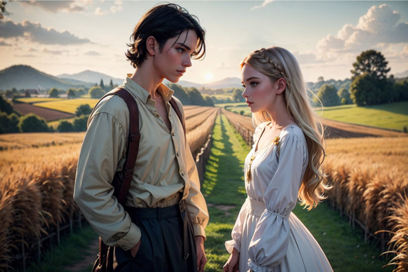 Среди бескрайних полей, где колосья пшеницы клонились под тяжестью зрелых зерен, на залитом солнцем лугу лежали молодой парень и девушка. Волосы её, чистое золото, украшенные весенними цветами, сливались с золотистой пшеницей. В руках она теребила зеленый колосок пшеницы, словно последний островок живой зелени в этой золотой глади бескрайних полей. Дыхание ветра ласкало их кожу, а их тела таяли в объятиях природы. Они лежали и смотрели за тем, как неспешно плывут облака, и души их плыли как эти облака, и казалось все сжимается до одного лишь этого момента, и в этом мире были только они.