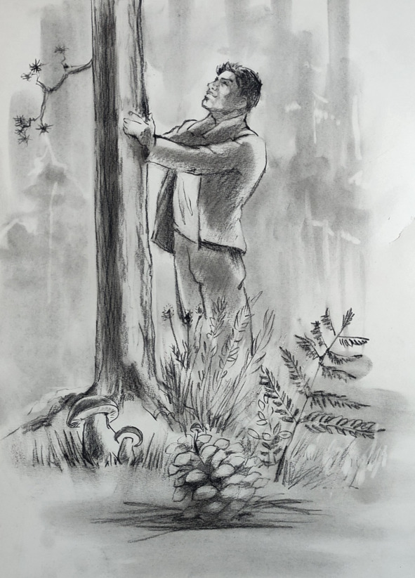 Андрей подошел к сосне. Сначала он слегка похлопал ее по коре, глядя вверх, в высокую крону, а потом приобнял, словно девушку за талию, и улыбнувшись, тихо сказал: