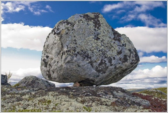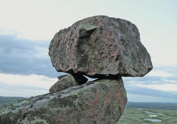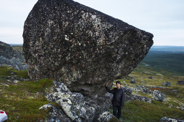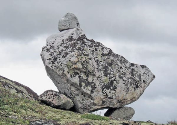 Рис. 13. Угловое, условно неустойчивое положение сейда. Один из отрогов горы Двойной, Кольский полуостров [14]