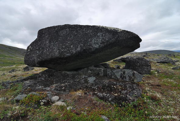 Рис. 24. Сейд, устанвленной ровной нижней поверхностью основного камня на каменный выступ основания [78]