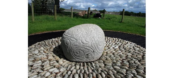 Камень Каслстрендж (Castlestrange stone) – рис. 28, находится на территории «Дома Каслстрендж» в графстве Роскоммон, Ирландия. Это гранитный валун, украшенный спиралями и завитушками, относящийся, по мнению автора [92], к периоду железного века, между 500 г. до н. э. и 100 г. н. э.