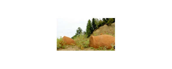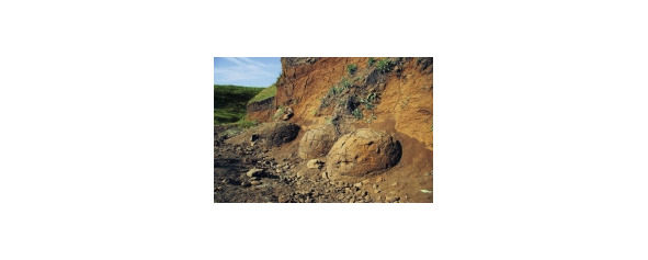 Каменные шары в селе Мокрая Ольховка после сильного дождя – рис. 31. Они расположены недалеко от села Мокрая Ольховка Котовского района (Волгоградская область). В осыпавшемся овраге из грунта показались 15 окаменелостей яйцевидной формы, которые местные СМИ позже окрестили «Котовскими яйцами». Необычные камни имеют форму и структуру поверхности, схожую с гигантскими яйцами рептилий.