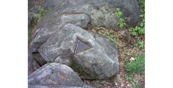 Теперь снова вернемся в Россию. В мегалитах Индомана находят много интересного, например, вырезанный треугольник в камне – рис. 33. Всё чаще и чаще простые энтузиасты и внимательные люди находят на просторах Руси удивительные находки. Эти необычные камни расположены в Вашкинском районе Вологодской области. Уровень обработки камня сопоставим с лучшими образцами древнейших культур мира. Эта территория – в междуречье рек Кемы и Индоманки.