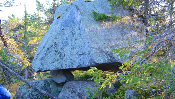 Рис. 22. Сейд, установленный на выступе на нижней стороне основного камня. Финляндия, сейд под названием «Странная скала» [21]