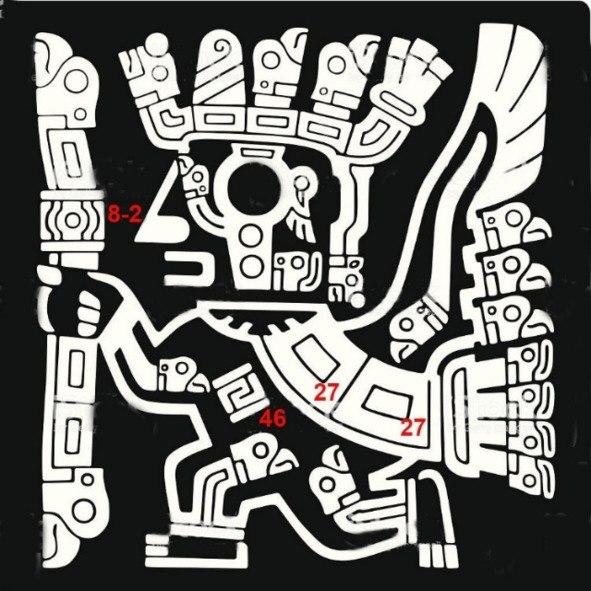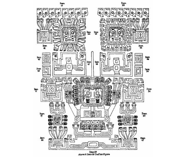 Рис. 40. Бог Виракоча. У него два звена меандра по 7 ячеек. Меркурий имеет 4 лепестска сверху [258]