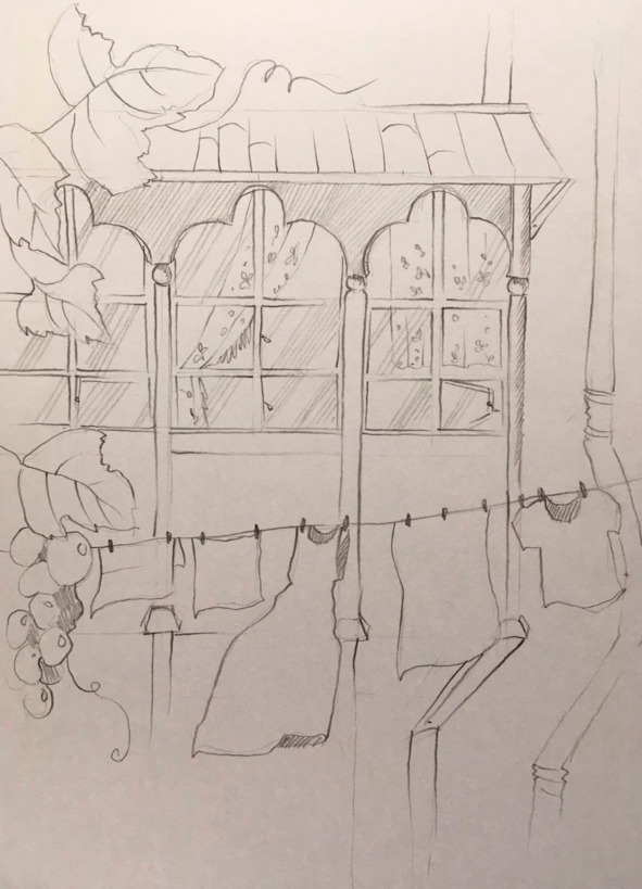 За фруктами и разговорами время в дороге прошло быстро. Скрипнув тормозами, машина такси свернула с основной дороги во двор и остановилась у подъезда. Тата Римма жила в пятиэтажном доме из серого туфа, совсем не похожем на те дома, к которым я привыкла в Менделеевске. Вместо наших малюсеньких балконов, ширина которых едва достигала метра, здесь это были целые комнаты, застекленные и утепленные. Бабушка называла их «шушабанд» ( комната, созданная в результате застекления балкона). Белье здесь сушили на длинных веревках, тянущихся от окна шушабанда до высоченного столба, стоявшего аж в соседнем дворе. Веревки ездили по роликам, один из которых крепился к столбу, а второй – к внешней стене дома, прямо под окном каждой квартиры, – крутишь ролик, и белье твое уезжает на самую середину двора. Вместо привычных мне вишневых и малиновых кустов во дворе бабушкиного дома стояли высокие деревья, укрывавшие двор от палящих лучей летнего солнца, а с другой стороны дома раскинулась невероятной красоты густая виноградная лоза. прим. авт.