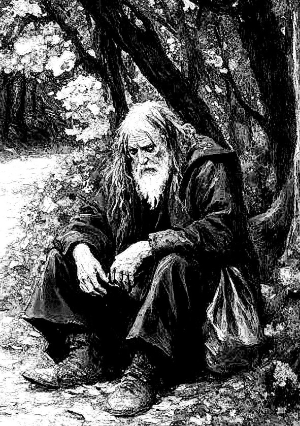 Нищий не отвечал, он лишь медленно поднял голову, и под капюшоном блеснули его усталые глаза. Он посмотрел на толпу, на людей, которые только что были так счастливы, и произнёс тихо, но твёрдо: