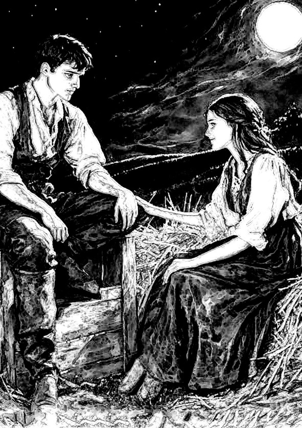 Но не все остались в лесу. Одна пара, девушка по имени Оливия и её возлюбленный Юстус, решили уйти подальше от шума и суеты. Они убежали туда, где никто не смог бы их найти. К стогам, на окраину деревни. Там, под ночным небом, они сели, обнявшись, чувствуя тепло друг друга, и говорили о любви.