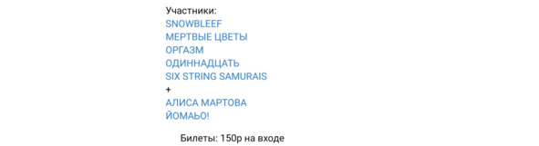 Есть, скажем так, малоизвестные исполнители. И есть лиги – Высшая, Первая, Вторая и – исполнители третьего эшелона. Которые не попадают ни в какие лиги. Что такое внелиговый исполнитель? Вот пример. Сборный концерт в 2024 г, где входной билет 150 ру. Вы когда-нибудь встречали/слышали название хотя бы одного из этих исполнителей? Я – нет.