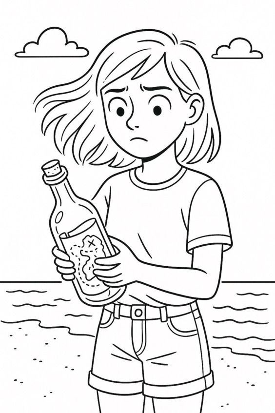 Алиса бродила по берегу после сильного шторма. Ветер всё ещё дул с моря, поднимая в воздух пёстрые перья чаек и шелестя в прибрежных травах. Она подбирала ракушки, когда вдруг заметила у самой воды бутылку – длинную, зелёную, с пробкой.