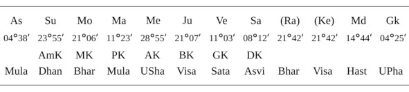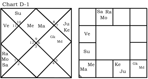 In the following example, Maandi and Gulika afflict the child’s Lagna. He passed away shortly after reaching the age of three.