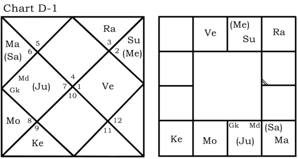 – It is beneficial when the rulers of the Dusthana houses are not placed in the 1st house and do not influence the D-6 Lagnesha.