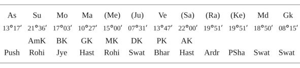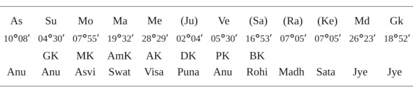 He passed away during the Sagittarius—Virgo period according to Chara Dasha.
