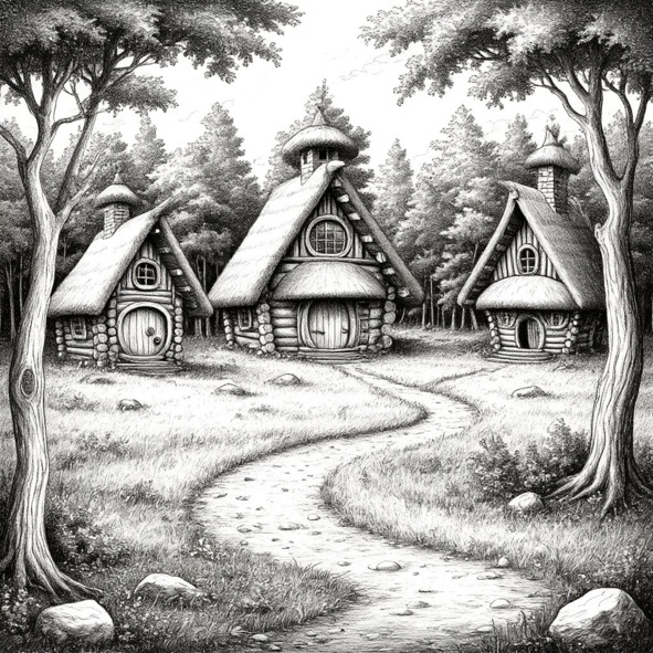 Им показалось, что шли они уже целый час. Деревья стали расступаться, и они вышли на широкую поляну. Там стояло несколько домов. Где-то вдалеке слышалось, как течёт вода. В той стороне стояла красивая резная баня.