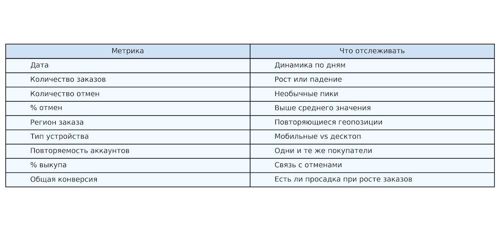 Чтобы отличить случайные отмены от атакующих, важно отслеживать четыре ключевые группы метрик. Они позволяют выделить аномалию из фона обычных показателей.