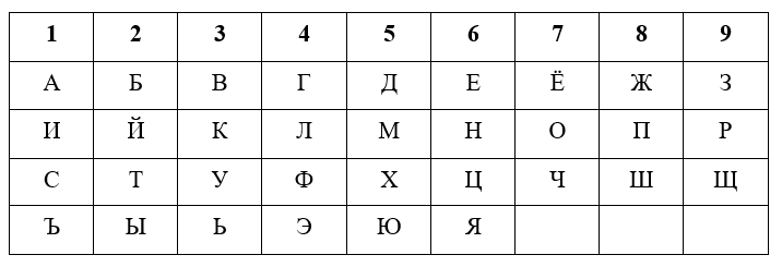 Для расчетов используем таблицу перевода букв в числовые значения: