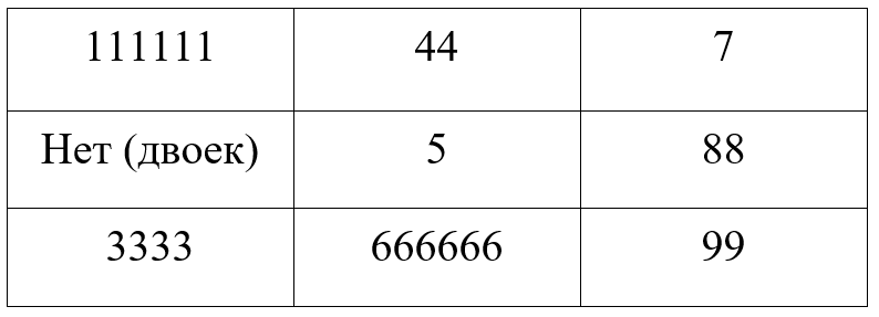 Все эти цифры заносим в таблицу. В первую клетку выписываем все единицы из полного ФИО. Под единицами двойки, ниже все тройки. Второй столбец: четверки, пятерки и шестерки. Третий: семерки, восьмерки и девятки.