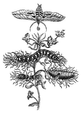 И смотрела, как гусеницы, отложив семена, заменяют смерть жизнью, как ползучее существо становится крылатым… кожа у них точно человеческая. Если хотя немного дотронешься до нее рукою, то она начинает пухнуть с великой болью. Гады сии, хотя и имеют лапки, но ползают, пригибаясь; звук же они издают журчащий, подобно волынке.