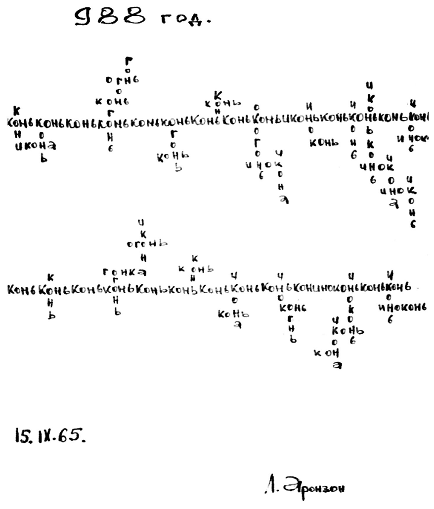 Не опубл. О принципах отбора текстов для настоящего издания см.т. 1, с. 407–409. Образцы раннего творчества Аронзона представлены в сб.: «Фантазии на тему тоски»: первый сборник Леонида Аронзона / Публ. И. Кукуя. – Париж, 2005.
