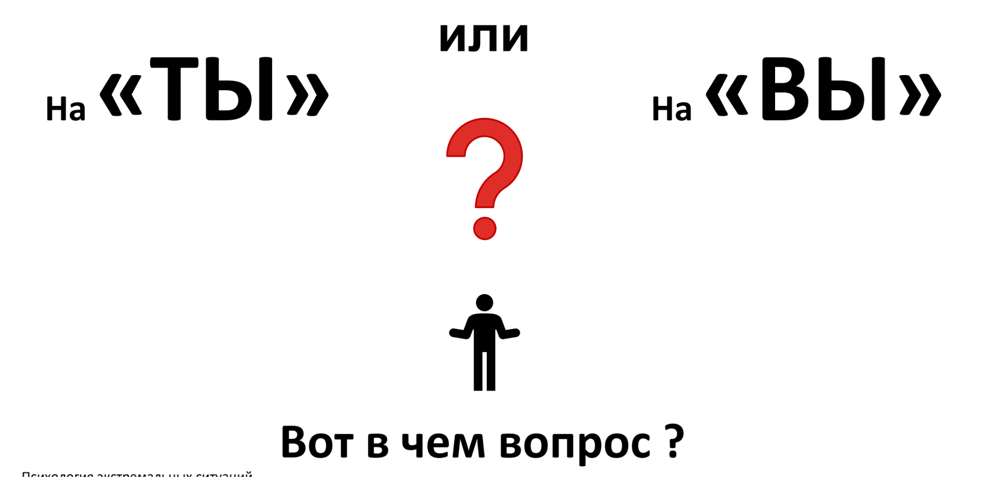 ● Работа в условиях, где "ты" является нормой: В некоторых узких профессиональных сообществах (например, среди спасателей или военных) обращение на "ты" может быть нормой даже для малознакомых людей, так как оно подчеркивает принадлежность к одной команде, братство. В таких случаях психолог, работающий с этим контингентом, может адаптировать свой стиль общения.