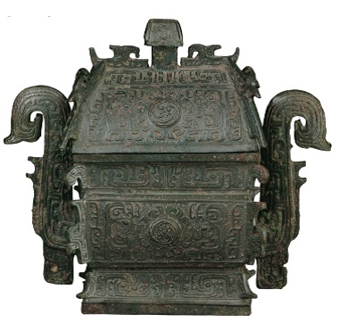 Бронзовый квадратный кувшин для вина Ли. На нем написано, что правитель Чжоуотдал приказ присвоить титул мастеру по изготовлению посуды господину Ли