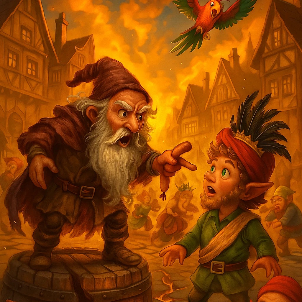Как гуси спасли однажды человеческий Рим, так и попугай Аристарх решил сыграть свою птичью роль в гномьей истории. Нагнетая тревогу, он завизжал свою коронную фразу так сильно, что стеклянная посуда в домах начала лопаться:
