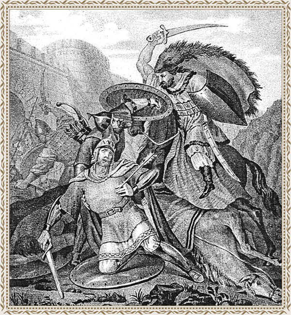 Неудивительно, что Святослав не слушал добрых советов матери, когда она говорила ему о Боге: он думал только о сражениях, желал только того, чтобы все говорили о его храбрости и чтобы все боялись его. Конечно, нельзя было не говорить о нём: мало было людей, таких смелых и таких терпеливых, как он. Он всегда первым бросался в опасность и никогда не нападал на врагов нечаянно, а посылал наперёд сказать им: «Иду на вас!»