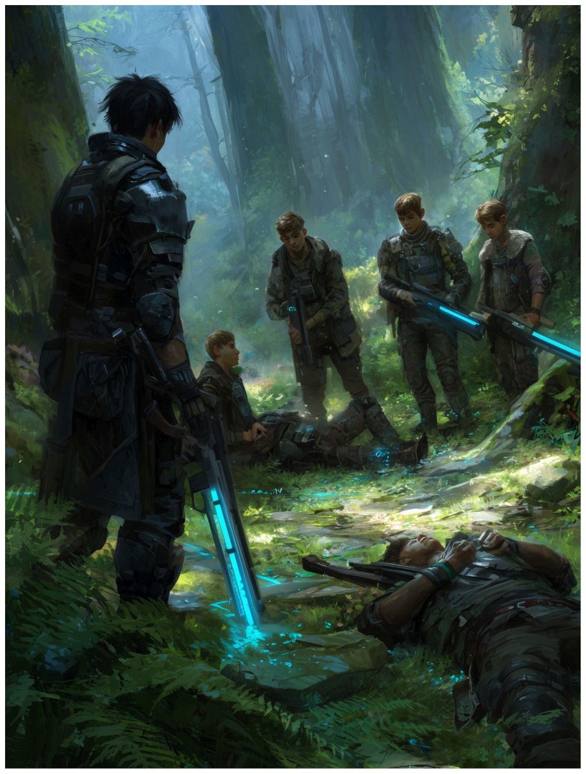 Снова обогнув заросли, я увидел удручающую картину. На ногах стояло четверо подростков, включая Когтя, и все они держали стену щитов. За их спинами на земле сидело трое парней, державшихся за голову, и еще один занимался их перевязкой. И рядом лежало двое, не подавая признаков жизни.