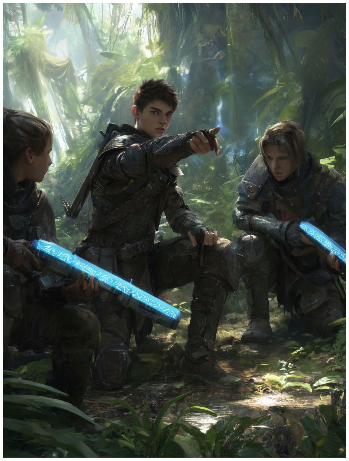 Сделав еще пару шагов, я выключил щит, так как он мне мешал, и присел. Остальные сделали то же самое, и с минуту ничего не было слышно, кроме естественного фона леса. Тогда я обернулся и жестом подозвал себе Когтя и его напарника из охранения. Группа же Воледара в это время укрывалась за стеной щитов.