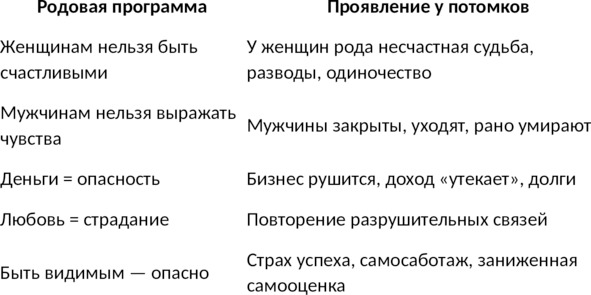 – в родовой памяти;