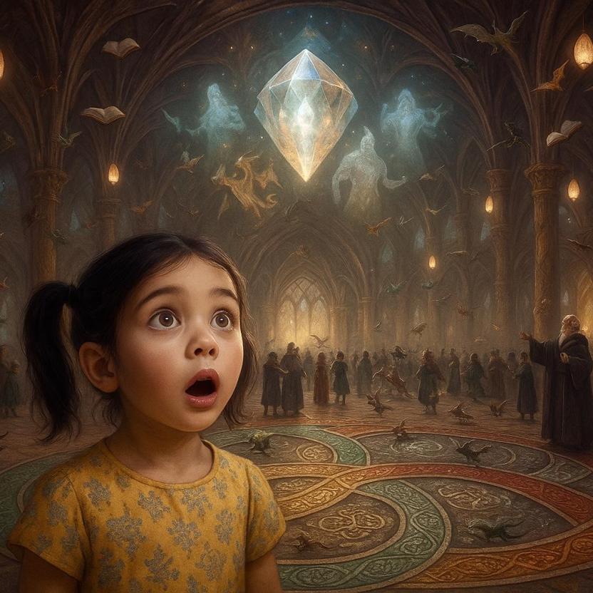 Эля: Ее взгляд приковал кристалл и золотая струйка знаний, струившаяся от него к Золотой тропе Хранителей. Она не заметила, как Пава аккуратно спрыгнула с ее плеча и подошла к самой кромке Золотой тропы. Дракоша вытянула шею, словно пытаясь прочесть древние письмена на мозаике. Ее обычно строгие глаза горели любопытством.