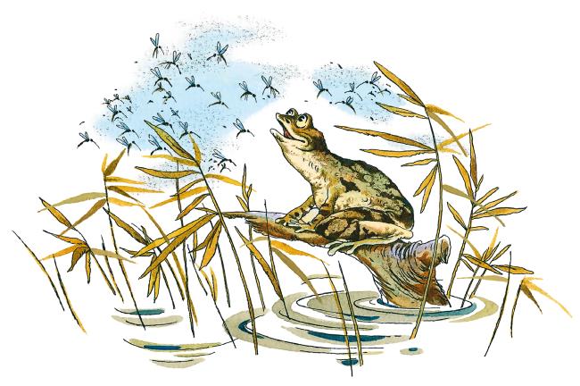 Тут уж лягушка не выдержала и, забыв всякую осторожность, закричала изо всей мочи: