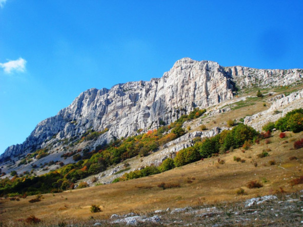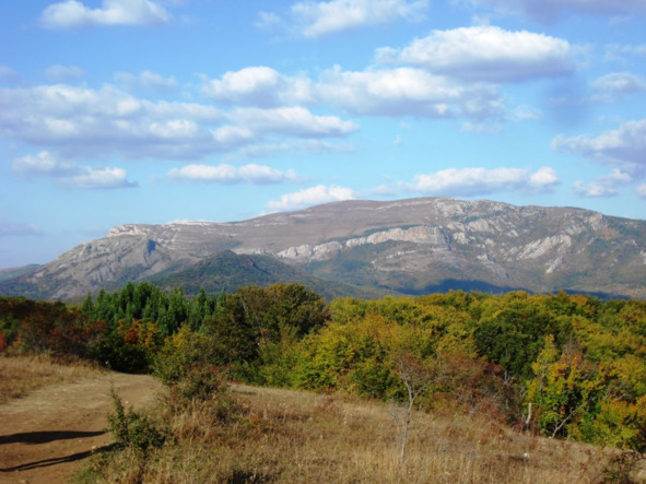 Тропа, по которой мы вышли из прилегающего к Чатыр-Дагу леса, поднимается на верхнее плато к горе Ангар-Бурун.