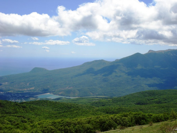 Поэтому, что бы отдохнуть и обозреть окрестности, остановимся и посмотрим в даль, на Алуштинскую долину и безбрежное море…