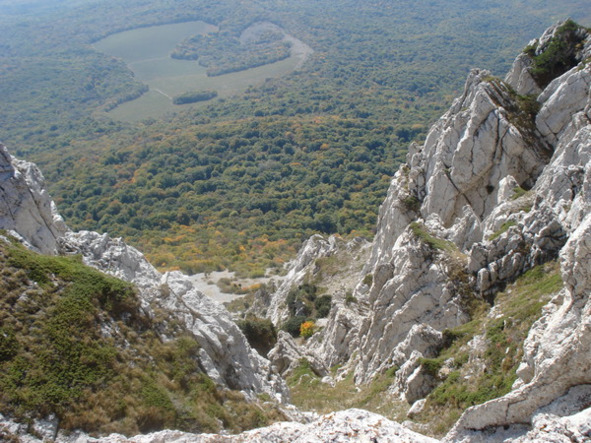 Получив наслаждение от пребывания на вершине Чатыр-Дага и загадав сокровенное желание (именно за этим сюда и идут), мы спускаемся вниз. И, как обычно, у нас есть несколько вариантов спуска. Можно спуститься с Эклизи на плато и тропкой меж скал пройти до Ангар-Бурун, а там уже спуститься на Ангарский перевал.