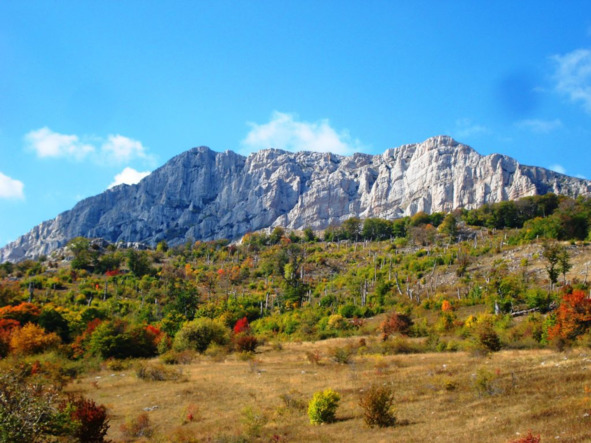 У горной гряды Чатыр-Даг есть два плато. Плато – это похожая на степь верхняя часть крымских гор. Когда находишься на плато, вдали от края горы, создается впечатление, что ты в степи, а вокруг тебя небольшие вершины-курганы.