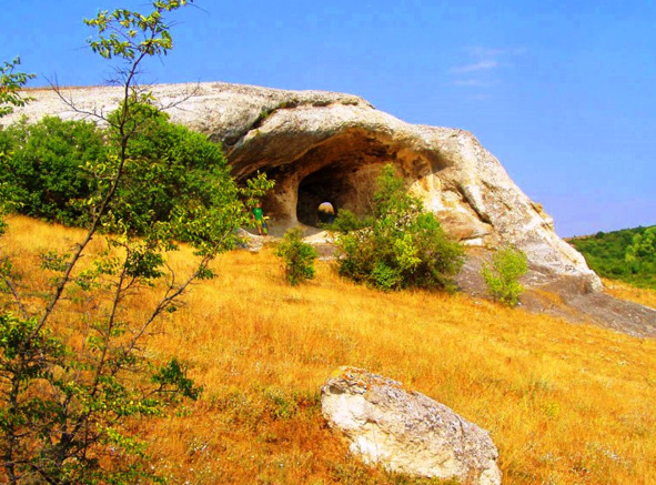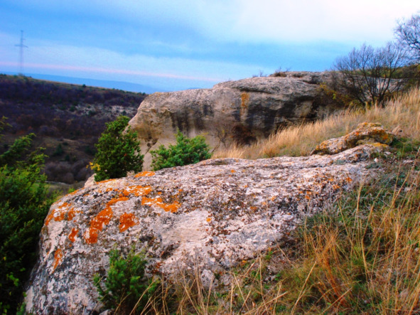 Каменный обработанный выступ возле пещеры в Богаз-сала