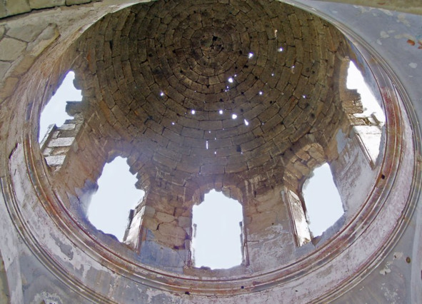 Над пилонами купол начинается не сразу, а есть еще круглая башня с 8-ю окнами и 8-ю пространствами между ними, где находились, по всей видимости, иконы.