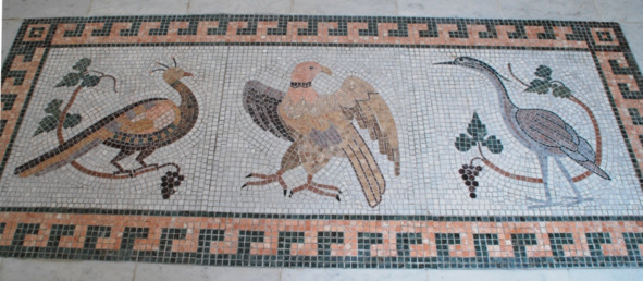 Мозаика пола храма с изображениями 12 птиц
