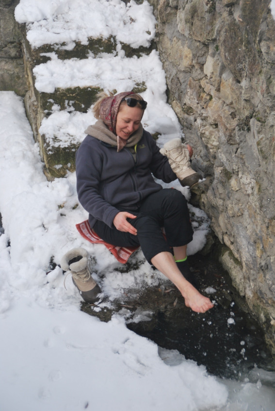 Окунание ног в замерзшей купели