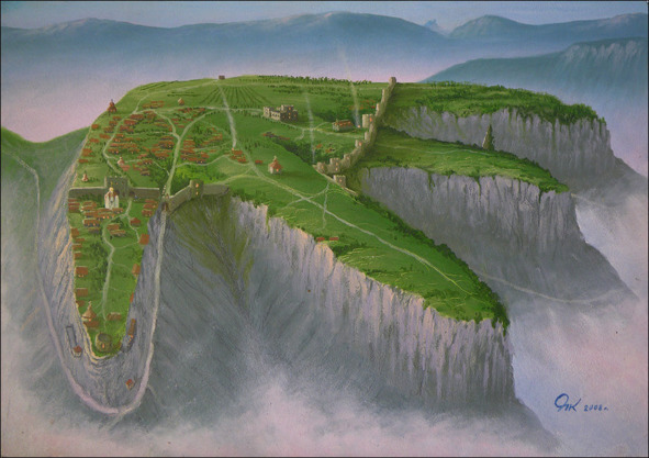 Такие внутренние моря греки называли пелагос. Все долины были залиты водой. И только после схода вод, появляются селения в предгорных долинах Крыма. Именно по этому выступающие мысы Мангупа названы мысами. По этому озеру к Мангупу переправлялись на лодках.