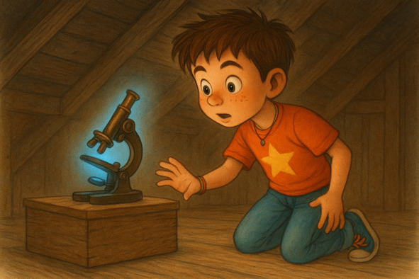 Однажды Коля нашёл на чердаке старый микроскоп.