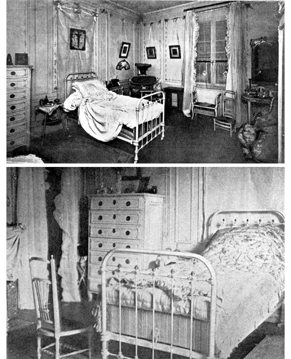 Спальня Марты Штайнхаль. Именно в ней заночевала Маргарита, предоставившая собственную спальню в распоряжение матери. Фотографии сделаны во время осмотра места преступления полицией 31 мая, никакого особенного беспорядка не заметно, преступники, судя по всему, в этом помещении обыск не проводили.