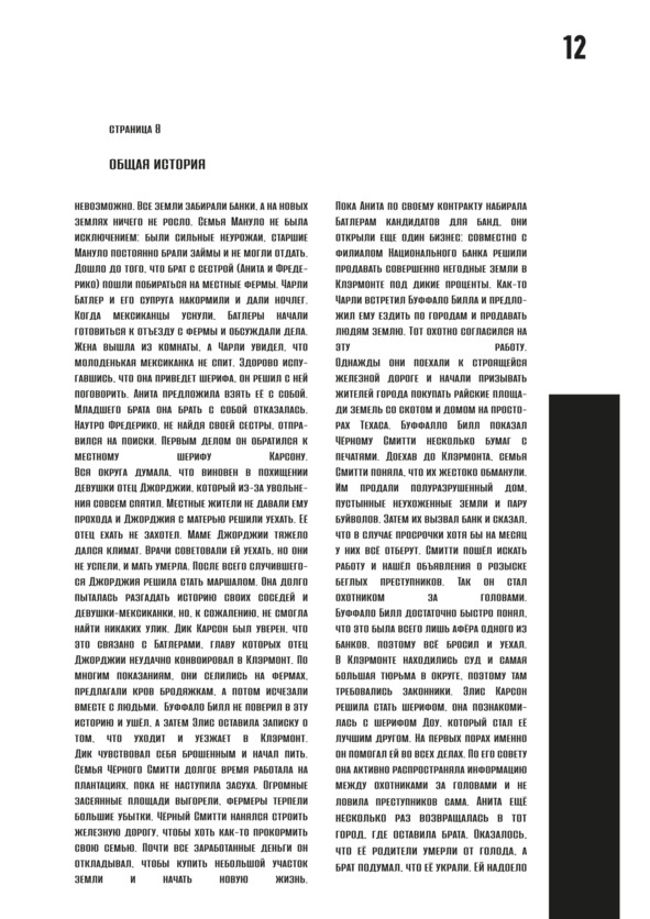 Всю свою жизнь я мечтала о приключениях. У моих родителей были довольно скудные представления о мечтах. Им казалось, что путь каждого человека определяется тем, в какой семье он родился. Наша семья занималась фермерским хозяйством. Самым успешным фермерам, чьи земли были на границе с Америкой пообещали большие земли при переезде. Мои родители в это поверили, а на деле нашу старую землю забрал банк, а на новой ничего не росло.