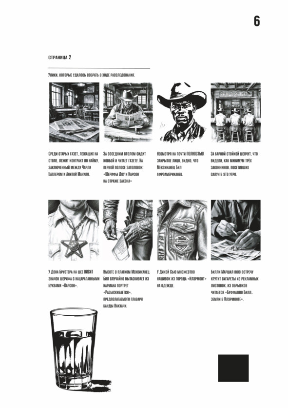 2. За соседним столом сидит ковбой и читает газету. На первой полосе заголовок: «Шерифы Доуи Карсон на страже закона».