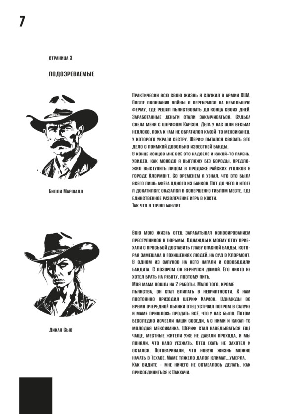 Практически всю свою жизнь я служил в армии США: нас перебрасывали с учений на учения, мы кутили и знакомились с красивыми женщинами. Конечно же меня всё устраивало. После окончания войны я перебрался на небольшую ферму, где решил пьянствовать до конца своих дней. Заработанные деньги стали заканчиваться. Судьба свела меня с шерифом Карсон. Так как у меня было большое военное прошлое он сказал, что ему пригодятся вторые руки в поимке преступников. Дела у нас шли весьма неплохо, пока к нам не обратился какой-то мексиканец, у которого украли сестру. Шериф пытался связать это дело с поимкой довольно известной банды.