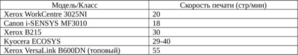 Скорость достигает 40—55 страниц в минуту и выше. Эти модели рассчитаны на интенсивную нагрузку и большие объемы печати.