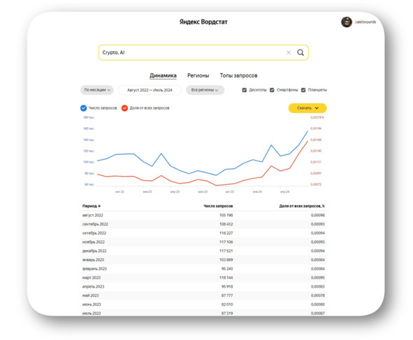 Вордстат – это инструмент, который показывает статистику поисковых запросов к Яндексу. С его помощью можно посмотреть, как менялась популярность интересующих вас запросов и как она отличается в разных регионах России, а также построить топы запросов с нужными словами и узнать, что ещё люди искали на ту же тему.