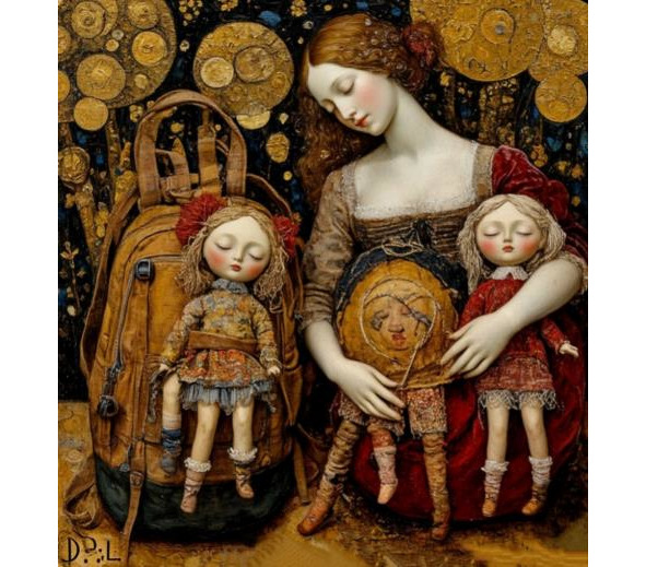 сжавшимися куклами, за немой драмой тряпок и дерева.